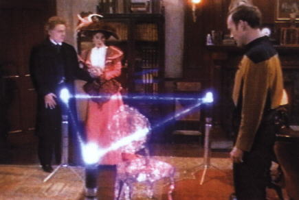 Bei dieser holographischen Simulation werden Strukturverstärker verwendet um Holo-Materie mehr Substanz zu verleihen - damit sie an einen Ort gebeamt werden kann, der fälschlicherweise für real gehalten wird.
